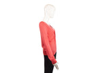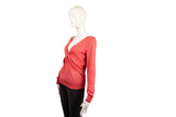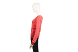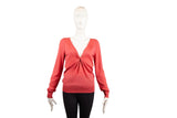 This Alexander McQueen knit top is crafted from luxurious cashmere in a vibrant coral pink hue. Featuring a distinctive center tie detail and a refined silhouette, this piece showcases the brand's mastery of knitwear and elegant, modern design.