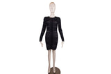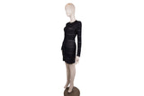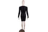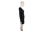 This Alexander McQueen dress features an intricate white and black jacquard knit with graphic patterning and a structured silhouette. Architectural and refined, it reflects McQueen’s signature blend of artistry and tailoring.