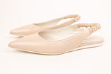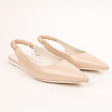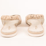 Step out in style with these Bottega Veneta Beige Ruched Slingback Leather Flats. These flats are made from leather and have a ruched slingback heel design for support. They sport a pointed toe and offer a cushioned insole for comfort. Perfect for any day out.