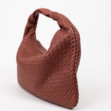 Experience the timeless craftsmanship of Bottega Veneta with this Intrecciato Hobo Bag in mauve pink brown lambskin leather. The iconic Intrecciato weave showcases the brand’s heritage of handwoven luxury, creating a supple and elegant silhouette. This spacious hobo features a soft top handle and a zip-top closure, opening to a smooth leather-lined interior with a single zip pocket for secure storage. A versatile and refined piece, perfect for everyday sophistication and understated Italian style.