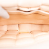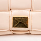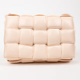 Elevate your style with the Bottega Veneta Intrecciato Padded Cassette Crossbody Bag, a stunning statement piece crafted in smooth peach orange pink padded lambskin leather. This modern icon features Bottega Veneta’s signature Intrecciato weave design, a flat adjustable crossbody strap with gold tone hardware. The magnetic closure opens to an all-leather roomy interior featuring one zipper pocket. Perfect for both day and evening wear, this luxurious crossbody offers impeccable Italian craftsmanship and effortless sophistication.