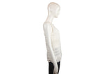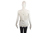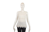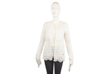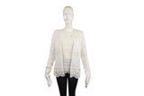 This Roberto Cavalli two-piece set features a delicate white lace knit design, offering a sophisticated and airy aesthetic. The ensemble includes a coordinated top and cardigan, showcasing the brand's commitment to intricate textures and elegant layering options for high-end wardrobes.
