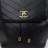 This Chanel Chevron Top Stitch Backpack with Gold Hardware exudes timeless sophistication and modern practicality. Crafted from luxurious black caviar leather, it features Chanel’s signature chevron quilting and the classic interlocking CC logo in gleaming gold. The drawstring and flap closure ensure both style and security, while the structured silhouette maintains an effortlessly chic appeal.