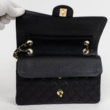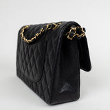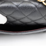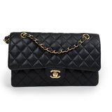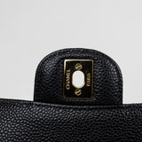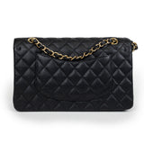 A true icon of luxury fashion, the Chanel Classic Flap Bag in black caviar leather with gold hardware represents timeless elegance and impeccable craftsmanship. The durable caviar leather showcases Chanel’s signature diamond quilting, while the interlocking CC turn-lock closure gleams in rich gold tone.