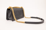Chanel Medium Boy Caviar Black Leather Bag with Gold Hardware