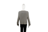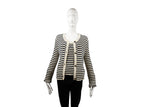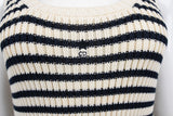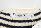 This Christian Dior two-piece set features a classic cream and blue striped motif in a textured knit. Comprising a coordinated cardigan and inner layer, this ensemble showcases Italian craftsmanship and timeless nautical inspiration, finished with the elevated detailing synonymous with the House of Dior.