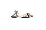 These Christian Louboutin Galeria sandals feature a sleek black leather construction accented with polished silver-tone stud detailing. Designed with a minimalist ankle-strap silhouette and signature red lacquered soles, they deliver refined elegance with a modern edge suitable for day-to-evening wear.