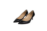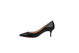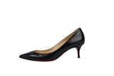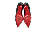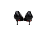 These Christian Louboutin pumps are crafted from smooth black leather with a classic pointed-toe and a comfortable low heel. Finished with the brand's signature red lacquered soles, these heels offer a sophisticated and iconic touch to any formal or professional wardrobe.