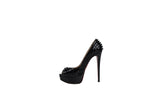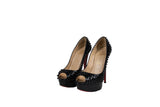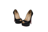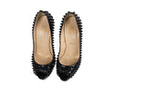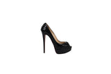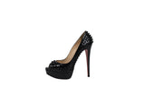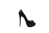 Christian Louboutin Black Patent Leather Lady Peep Spike Open Toe Pumps Size 38