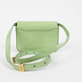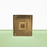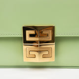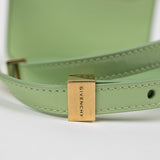 The Givenchy 4G Crossbody Mini Bag in glossy green patent leather embodies modern Parisian sophistication. Featuring gold hardware and the signature 4G clasp, this structured mini bag offers a sleek flap design with an adjustable leather strap for crossbody or shoulder wear. Its compact silhouette is ideal for carrying essentials in style.