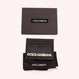 This Dolce & Gabbana card holder features a sleek black leather construction with bold white logo lettering across the front. Designed for everyday convenience, it includes multiple card slots and a slim profile that fits easily in pockets or small bags. A stylish, practical accessory for any luxury lover, complete with its original box and dust cloth.