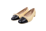 Stuart Weitzman Beige Tan Black Woven Cap Toe Low Heel Size 9.5