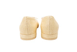 These Stuart Weitzman low flats offer a refined, summery aesthetic with a woven beige and tan body contrasted by a sleek black leather cap toe. Finished with a delicate bow detail and gold-tone aglets, these versatile shoes provide effortless style and comfort for everyday wear.