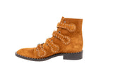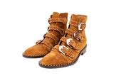 These Givenchy combat boots are crafted from premium suede and feature a bold, structured silhouette accented with silver-tone stud detailing and multiple buckle straps. Designed with a rugged yet refined aesthetic, they balance utilitarian edge with luxury craftsmanship. A standout footwear piece ideal for elevating everyday looks with a statement finish.