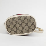 This chic Gucci Mini Drawstring Bag showcases the house’s iconic GG Supreme coated canvas trimmed in white leather and accented with the signature red-and-blue web stripe. Designed with gold-tone hardware and a leather drawstring closure, this mini bucket silhouette perfectly blends classic heritage with modern charm.