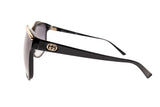 These Gucci GG3155 sunglasses feature a classic oversized silhouette with a glossy black frame accented by refined gold-tone detailing along the brow line. Designed with gradient lenses, they offer both style and sun protection, making them a timeless accessory that blends everyday wearability with signature Gucci elegance.