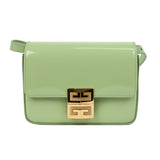 The Givenchy 4G Crossbody Mini Bag in glossy green patent leather embodies modern Parisian sophistication. Featuring gold hardware and the signature 4G clasp, this structured mini bag offers a sleek flap design with an adjustable leather strap for crossbody or shoulder wear. Its compact silhouette is ideal for carrying essentials in style.