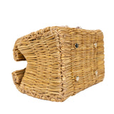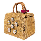 The Heimat Atlantica Beige and Pink Shella Bag is a handcrafted statement piece combining natural raffia craftsmanship with whimsical charm. Designed with delicate shell flower embellishments and a detachable pink leather strap with gold hardware. This artisanal handbag is perfect for summer styling or vacation wear. Each bag is uniquely made, showcasing organic texture and individuality.