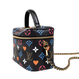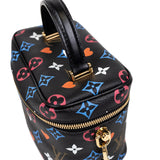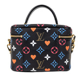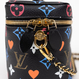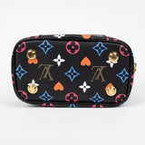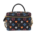The Louis Vuitton Game On Vanity PM Case Bag is a rare collector’s piece from the playful “Game On” capsule collection, reimagining the classic Monogram with a colorful twist. Crafted in black Monogram canvas with multicolor heart and monogram motifs, it’s accented with gold hardware, a top handle, and a detachable chain strap for crossbody wear. The structured vanity silhouette features a zip-around closure and a compact yet spacious interior perfect for essentials.
