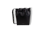 This Mansur Gavriel bucket bag is a minimalist classic crafted in black saffiano leather with a striking red interior lining. The structured silhouette is balanced by a soft drawstring closure that creates effortless folds at the top. The adjustable strap features gold hardware for a refined finish. Lightweight, iconic, and ideal for everyday wear. A beautiful blend of function, craftsmanship, and understated luxury.