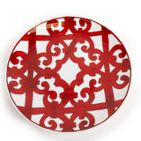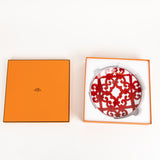 The Hermès Balcon du Guadalquivir White Red Plate embodies the maison’s timeless elegance and artisanal craftsmanship. Inspired by the wrought-iron balconies of Andalusian architecture, this piece features intricate red scrollwork set against a crisp white porcelain background. Its refined symmetry and bold contrast make it a sophisticated addition to any dining table or collector’s display.