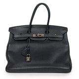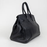 The Hermes Birkin 35 in Black Clemence Leather with Palladium Hardware is a timeless statement of sophistication. Known for its supple texture and slightly relaxed silhouette, Clemence leather adds a touch of softness to the structured Birkin form. This piece features classic Hermes craftsmanship — from the meticulous hand-stitching to the signature turn-lock closure and padlock detail. The deep black tone and cool palladium accents create a modern, understated elegance suitable for both day and evening wear.