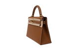 This Hermes Mini Kelly is crafted from structured leather with a refined silhouette and iconic top-handle design. A highly coveted classic, it represents timeless craftsmanship and elevated luxury in a compact form.