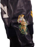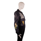 Off-White Navy Blue Printed Leather Aviator Jacket Size S