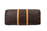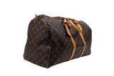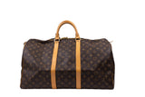 The Louis Vuitton Keepall 50 is the ultimate travel companion, meticulously crafted from the Maison's signature monogram coated canvas. This cabin-friendly duffle features a supple, spacious design with sturdy leather top handles, offering a blend of heritage elegance and modern durability for the sophisticated traveler.