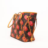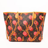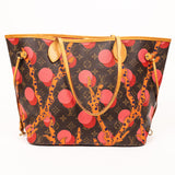 This limited-edition Louis Vuitton Neverfull Ramage is a bold reinterpretation of the classic monogram tote. Featuring vibrant coral, pink, and orange abstract artwork over LV’s signature coated canvas, this collectible piece stands out with its artistic flair. Natural Vachetta leather trim, side cinch cords, and a spacious open interior make it both striking and functional.