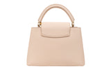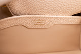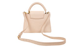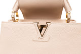 This Louis Vuitton Capucines BB bag is crafted from soft cream Taurillon leather and finished with polished gold hardware. Designed with the signature Capucines flap, structured silhouette, and a top handle for elegant everyday styling. A refined and versatile piece that elevates any wardrobe.