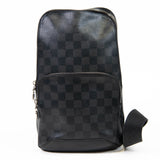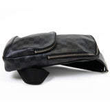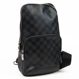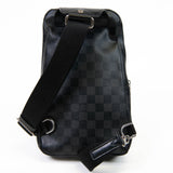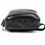 This stylish backpack is crafted of Louis Vuitton's signature Damier coated canvas in black and gray. This bag features a small zipped pocket on the front, an adjustable black canvas shoulder strap, and a silver wrap-around zipper that opens to a black fabric interior with a patch pocket.