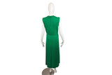 This Akris Punto dress is presented in a vibrant green hue, featuring a sophisticated sleeveless silhouette and a coordinating belt to define the waist. Crafted with the brand's signature precision, this dress offers a polished and modern aesthetic suitable for professional or social occasions.