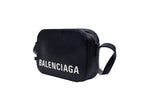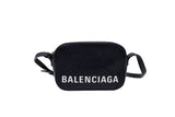 This Balenciaga Everyday camera bag is a sleek and modern accessory featuring a bold black and white color palette. Its structured silhouette and crossbody design make it a versatile choice for day-to-night styling, embodying the brand's contemporary aesthetic.