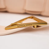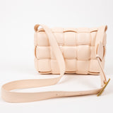 Elevate your style with the Bottega Veneta Intrecciato Padded Cassette Crossbody Bag, a stunning statement piece crafted in smooth peach orange pink padded lambskin leather. This modern icon features Bottega Veneta’s signature Intrecciato weave design, a flat adjustable crossbody strap with gold tone hardware. The magnetic closure opens to an all-leather roomy interior featuring one zipper pocket. Perfect for both day and evening wear, this luxurious crossbody offers impeccable Italian craftsmanship and effortless sophistication.
