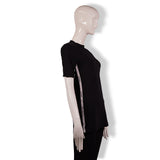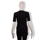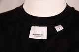 This Burberry tee is crafted in a sleek black stretch-knit cotton with subtle white stripe detailing along the sides for a clean, modern athletic-inspired look. The streamlined silhouette, raglan sleeves, and minimalistic branding create a versatile top that pairs effortlessly with denim, leggings, or layered jackets. Lightweight and comfortable, it’s an elevated everyday essential with Burberry’s signature understated luxury.