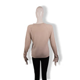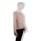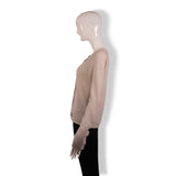 This Burberry cardigan features a soft tan knit with classic button-front closure and subtle pleated cuff detailing. Designed with a clean crew neckline and a refined minimalist silhouette, it offers an easy, polished layer for everyday wear. Lightweight and versatile, it pairs effortlessly with denim, trousers, or skirts for a timeless Burberry look.