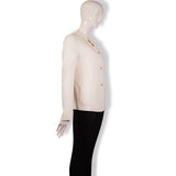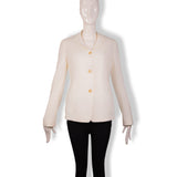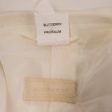 This Burberry Prorsum tailored blazer is crafted in a clean ivory/white tone with a minimalist silhouette and soft structure. Designed with three front buttons, subtle notch-style neckline, and front patch pockets, it offers an elegant and understated look. The lightweight cotton-blend fabric provides comfortable stretch and a refined drape, making it perfect for workwear, spring layering, or polished everyday styling.