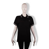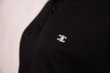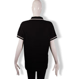 This Celine polo top features a classic black cotton body accented with crisp white contrast striping along the collar and sleeve cuffs. Designed with a tailored yet comfortable silhouette, it offers a refined, minimalist take on a timeless wardrobe staple. Finished with a subtle embroidered Celine emblem at the chest, it’s a versatile piece that pairs effortlessly with denim, skirts, or layered tailoring.