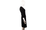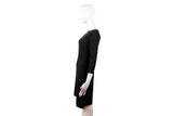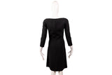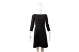 This Celine shift dress is crafted in classic black wool with a clean, minimalist silhouette. Featuring a bateau neckline and three-quarter length sleeves, the design reflects Celine’s understated Parisian elegance. The structured yet fluid shape makes it suitable for workwear, evening styling, or refined everyday wear.