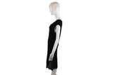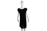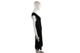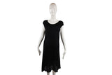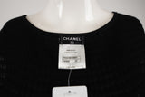 This Chanel dress features an elegant cap-sleeved silhouette with a delicate flower applique detail at the hem. The textured knit construction and refined tailoring reflect the house's heritage of feminine sophistication and meticulous attention to detail.