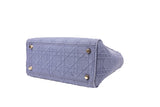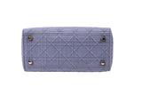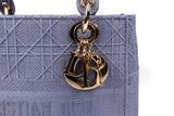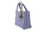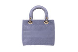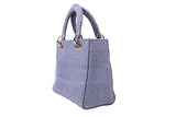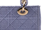 This Christian Dior Lady D-Lite bag is crafted in blue Cannage embroidered fabric and finished with gold-tone hardware. Featuring the iconic structured silhouette, top handles, and signature Dior charm detailing, this piece blends classic House elegance with modern textile craftsmanship. A refined statement bag suitable for everyday wear or elevated occasions.