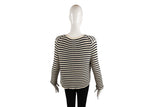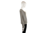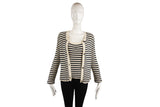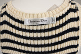 This Christian Dior twin set features a classic cream and navy blue striped motif, drawing inspiration from timeless nautical aesthetics. Crafted with a meticulous knit construction, the set includes a button-front cardigan and a matching sleeveless top, offering a coordinated look that balances casual elegance with the house's signature Parisian refinement.