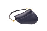 Christian Dior Navy Blue Saddle Bag with Gold Hardware