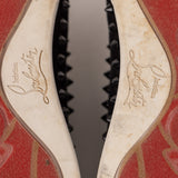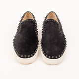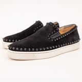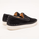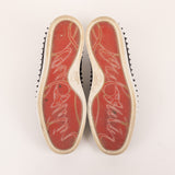 The Christian Louboutin Velvet Studded Slip-On Sneakers in black deliver luxe edge with tonal studs and smooth velvet construction. Featuring a white rubber sole and signature red bottom, these statement shoes elevate casualwear with bold sophistication.