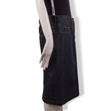 This Dolce & Gabbana denim pencil skirt features a classic dark-wash finish with clean lines and structured tailoring. Designed with front and back pockets, contrast gold stitching, and a traditional zip-and-button closure, it offers a polished silhouette that works effortlessly for both casual and elevated looks. The knee-length cut adds versatility, making it ideal for pairing with blouses, tees, or knitwear.