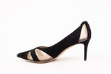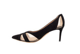 Ferragamo Black Nude Mesh Velvet Heels Size 6.5