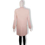 This elegant Givenchy coat is crafted in a soft blush pink wool with a minimalist, tailored silhouette. Designed with structured shoulders, a single-button closure, and clean flap pockets, it offers a refined, modern look that transitions effortlessly from day to evening. Fully lined in luxurious silk for a smooth, comfortable drape, this coat embodies understated Parisian sophistication.