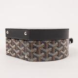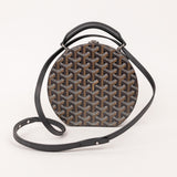 The Goyard Alto Hatbox Trunk in classic black Goyardine canvas embodies the brand’s timeless craftsmanship. This structured crossbody and top-handle piece features Goyard’s signature chevron pattern, palladium-finish hardware, and a detachable leather strap. Inspired by vintage travel trunks, the Alto offers a distinctive circular shape and a compact yet functional interior.