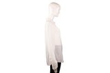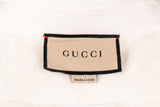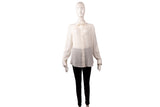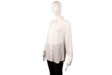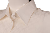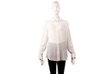 This Gucci blouse is crafted in lightweight cream silk featuring a subtle tonal GG monogram weave throughout. Designed with a classic point collar, full button-front closure, and long sleeves, it offers an elegant, fluid drape suitable for both tailored and relaxed styling. A refined wardrobe staple with understated luxury appeal.